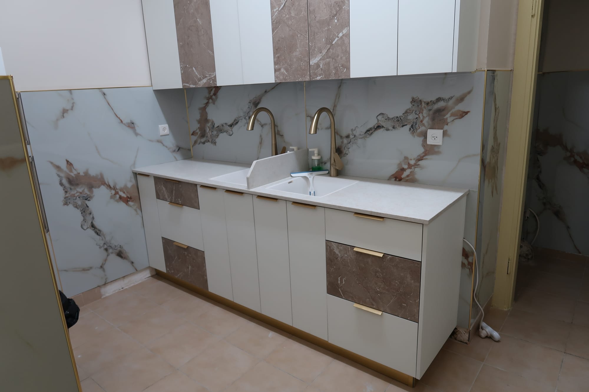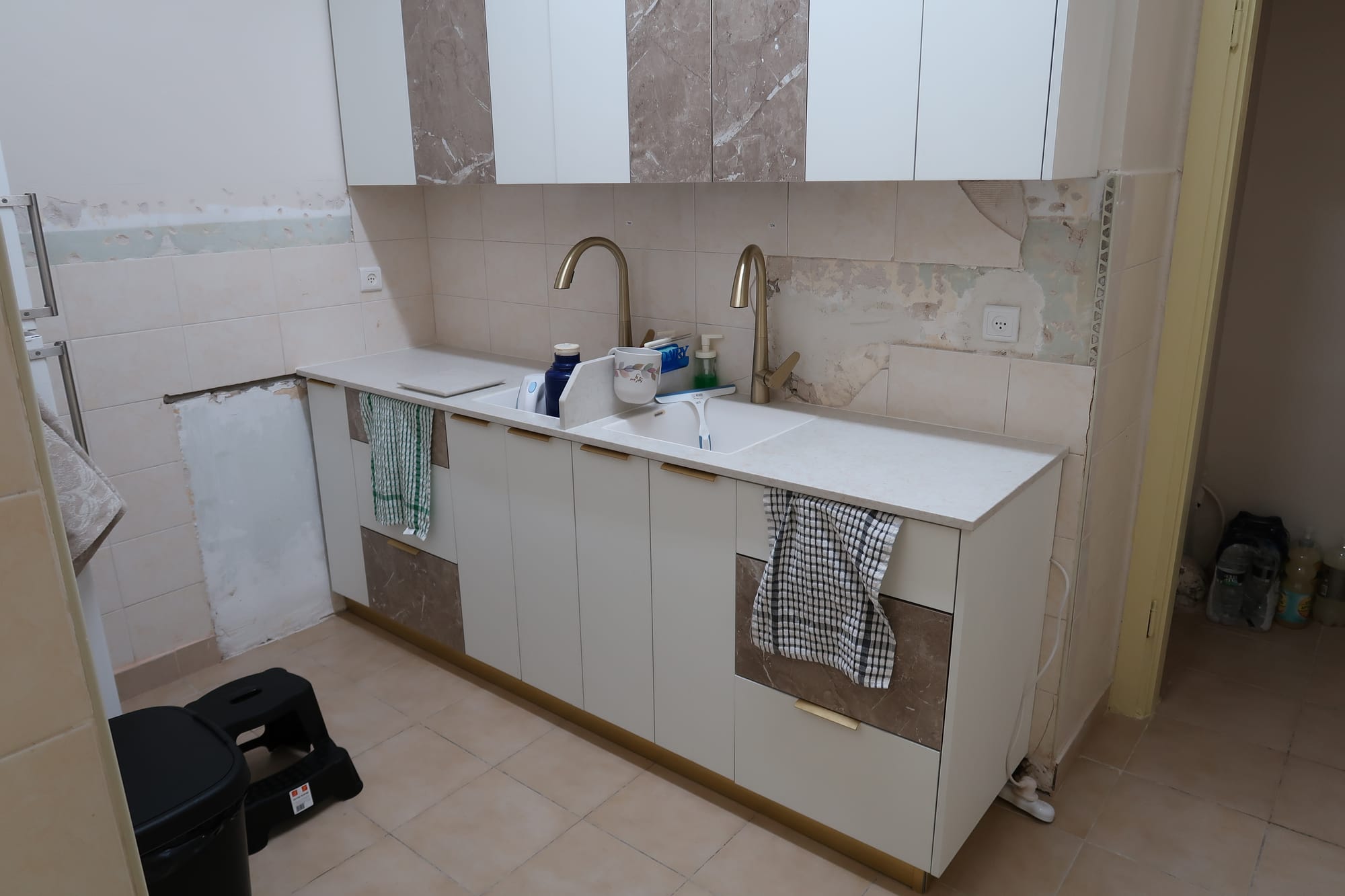 התמונות מציגות את מטבח משפחת ש. מחיפה לפני ואחרי השיפוץ. לפני, המטבח היה קומפקטי ומסודר בפשטות מאופקת, ואילו לאחר מכן הוא שופץ לכדי עיצוב מודרני, עם חומרים איכותיים וגימור מוקפד.